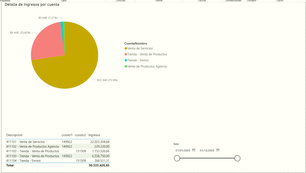 Ingresos detallados: